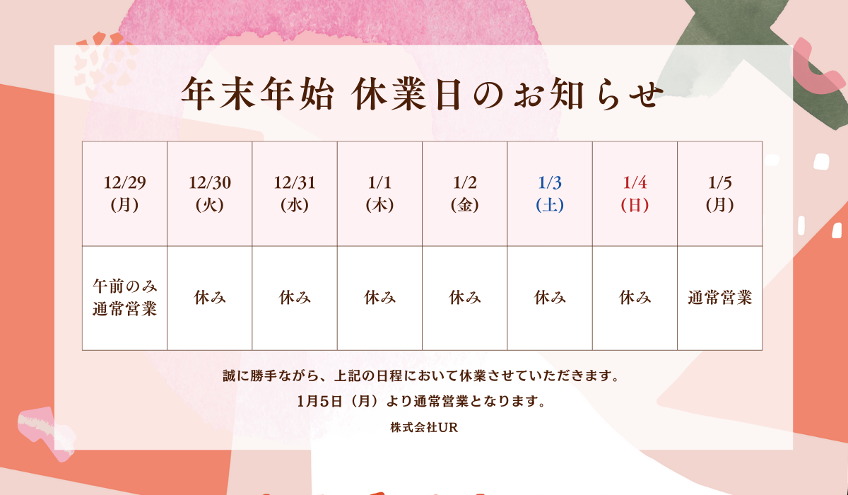 年末年始 休業日のお知らせ
